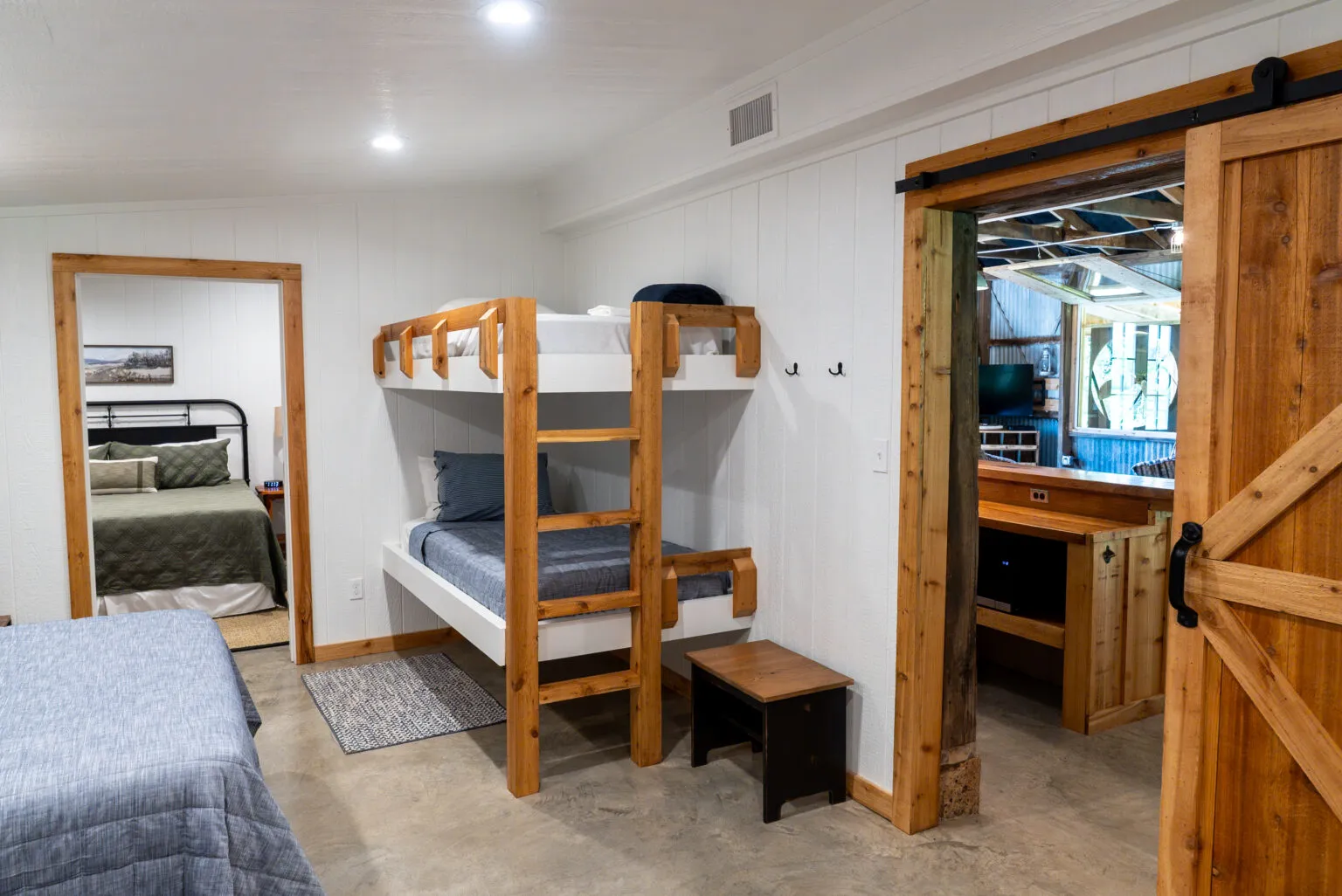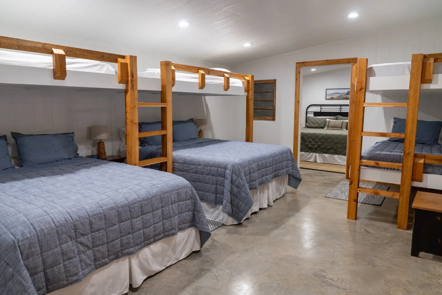 A fun-filled bunk room with two twin-over-queen beds and one twin-over-twin