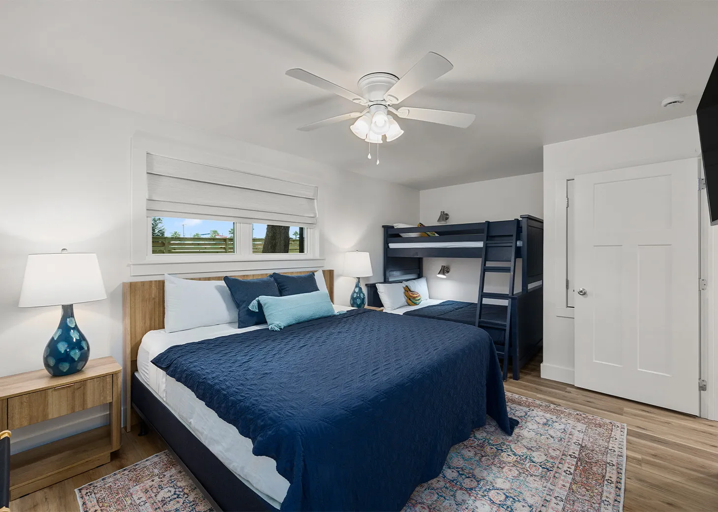 🛏️ Accommodations for up to 12 guests: Sleep easy in the master bedroom with a king bed and a full-size bed with a twin on top, a second bedroom with a king bed, a full bed, and a twin bunk, and a third bedroom with a cozy queen bed.