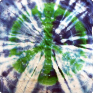 Throw up a peace sign with this classic design! Your kids will be saying “groovy baby!” in no time. Slightly different technique from the first three, this design gets its swirl by twisting the fabric and wrapping it tightly with rubber bands in a star-pattern.