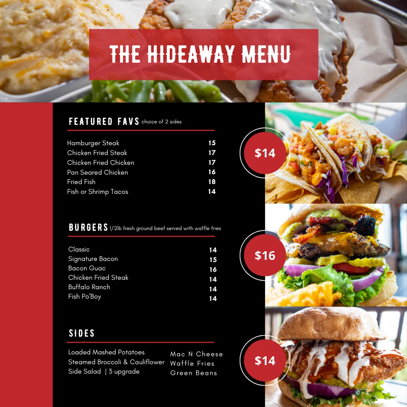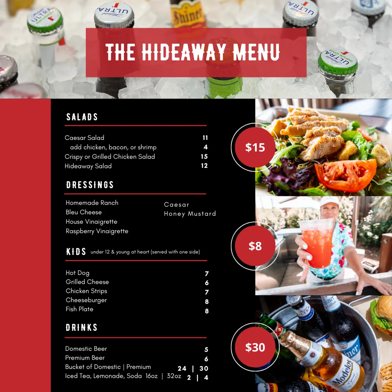 Back To Home The Hideaway at Splashway 5235 E 2nd St, Sheridan, TX 77475 9 out of 10 people love The Hideaway, and the 10th person is lying! 😂 🍔 Menu 🎵 Live Music Line Up 🕔 Hours FollowFollowFollowFollow