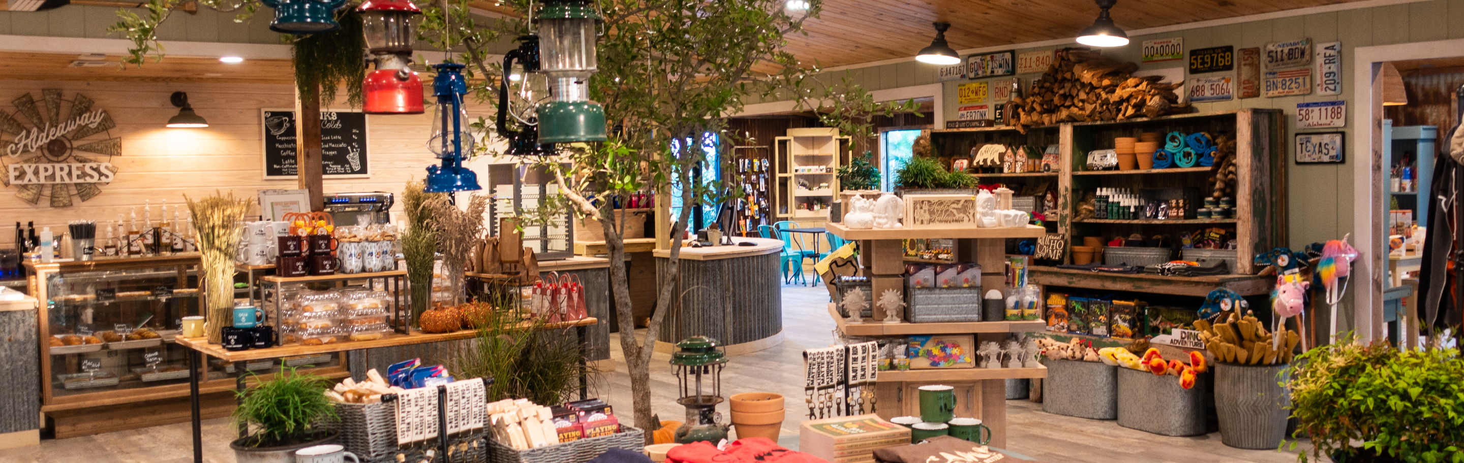 Splashway Campground’s Camp Store has everything you need for a perfect family camping trip. Forget something at home? We’re stocked with grocery essentials and toiletries! Looking for fun and games? We’ve got toys, games, water guns, glow sticks, and more to keep your kiddos happy! Need a sweet treat? We’ve got that too! Visit The Hideaway Express for a scoop of Blue Bell Ice Cream, freshly baked cookie, or cup of artisan coffee. We also have tons of camping-themed Splashway souvenirs your family will love! Located near the main entrance, just beside The Hideaway.